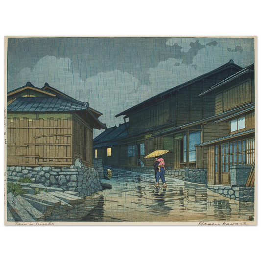 Kawase Hasui was one of Japan’s most celebrated woodblock print artists of the 20th century, known for his atmospheric landscapes and poetic evocations of seasonal beauty. A key figure in the Shin-Hanga ("New Prints") movement, Hasui masterfully blended traditional Japanese aesthetics with Western influences in light, shadow, and perspective.