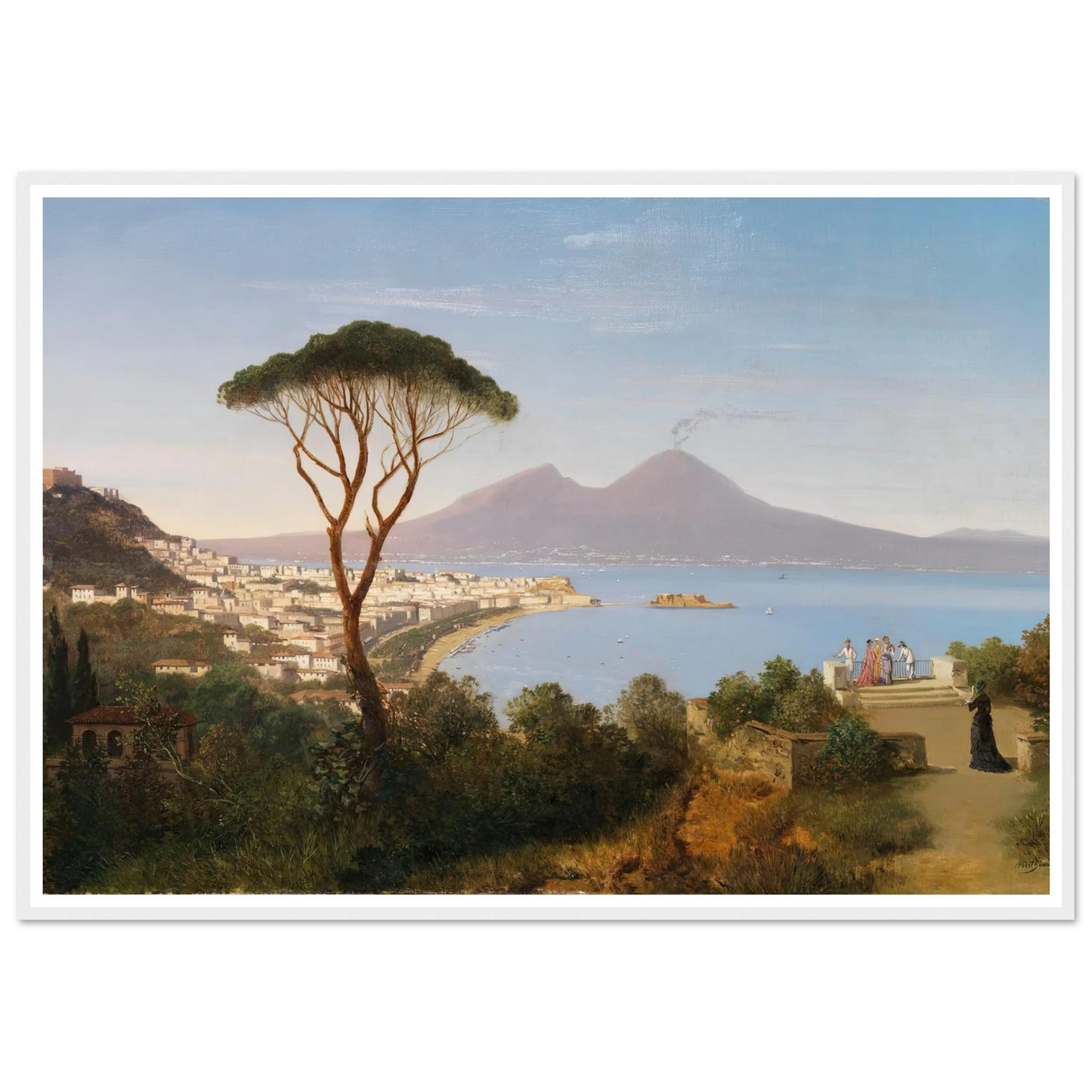 Blick vom Posillipo auf die weite Bucht von Neapel mit rauchendem Vesuv (ca. 1850) Kunstdruck | Albert Zimmermann