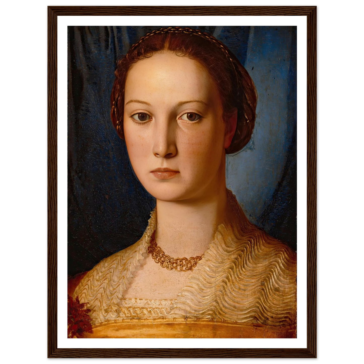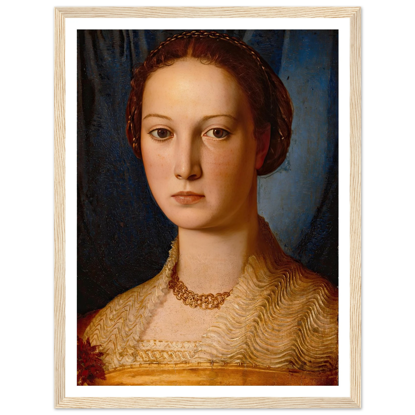 Bronzinos Porträts – insbesondere die der Medici-Familie – werden für ihre anmutigen Posen, üppigen Texturen und psychologische Subtilität bewundert. Er erhob die Hofporträtmalerei zu einer Kunst idealisierter Schönheit und fing nicht nur das Abbild, sondern auch das Prestige und die Haltung seiner Modelle ein.