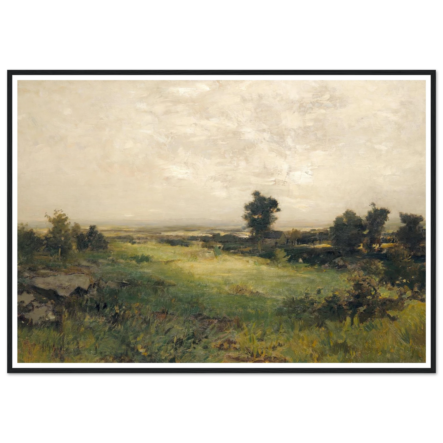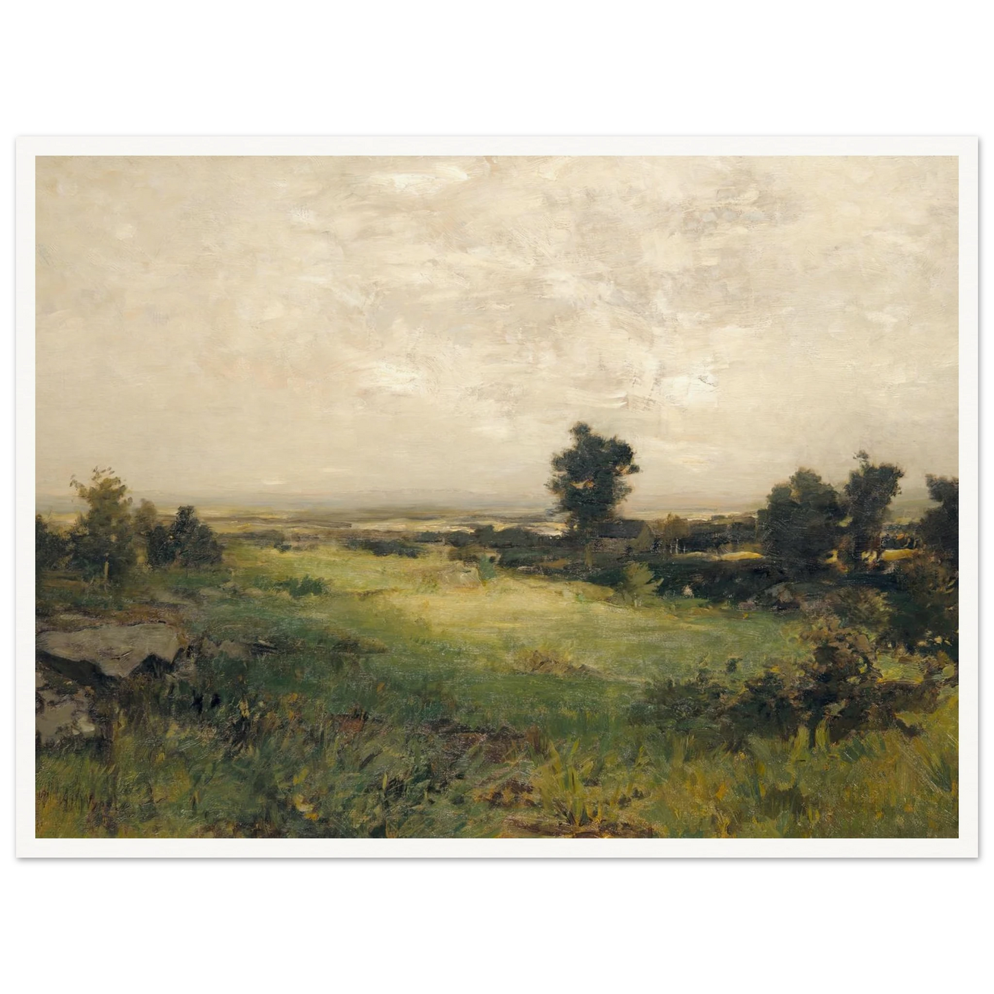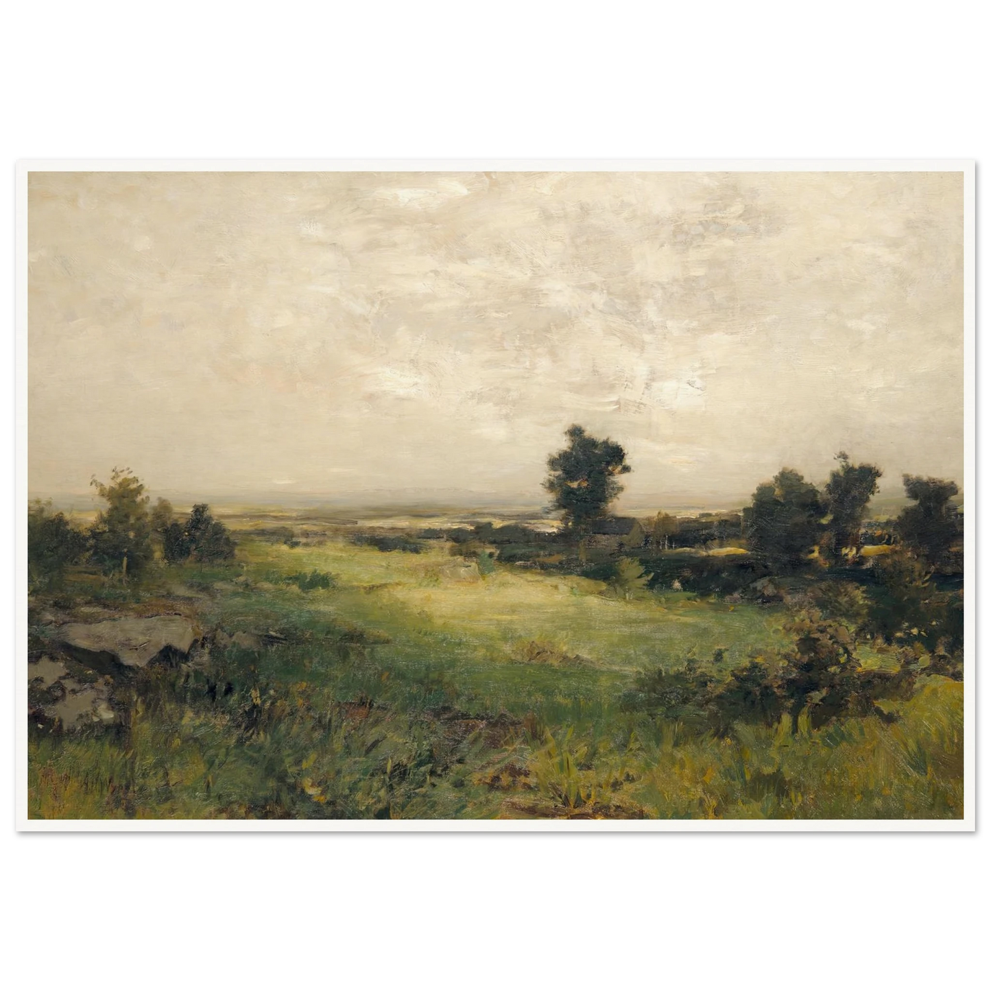 Wyants frühe Werke trugen deutlich die Handschrift seiner Wurzeln in der Hudson River School – weite, leuchtende Panoramen mit scharfen Details und sorgfältiger Komposition. Doch nachdem er 1873 einen Schlaganfall erlitten hatte, der seinen rechten Arm lähmte, brachte sich Wyant selbst das Malen mit der linken Hand bei. Diese körperliche Herausforderung führte zu einer introspektiveren, lyrischeren Herangehensweise an seine Kunst. Seine späteren Landschaften wurden sanfter und stimmungsvoller, geprägt von subtilen Tonwertwechseln, nebligen Bäumen und der stillen Einsamkeit der Natur.