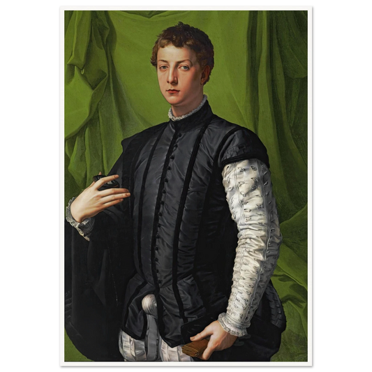 Bronzino's portraits — particularly of the Medici family — are admired for their graceful poses, sumptuous textures, and psychological subtlety. He elevated court portraiture into an art of idealized beauty, capturing not only the likeness but the prestige and poise of his sitters.