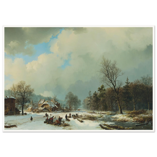 Winter landscape with wood gatherers and skaters (1854) Art Print | Barend Cornelis Koekkoek